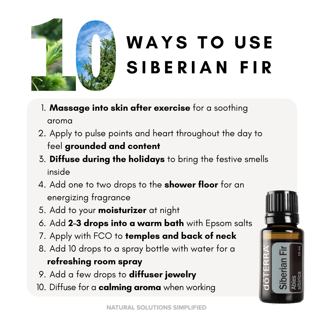 - Whether you’ve spent the day doing deep-cleaning, running a marathon, or chasing after kids, massage Siberian Fir into your skin for soothing comfort.